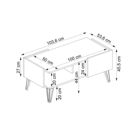 Hekla Çekmeceli ve Raflı Orta Sehpa