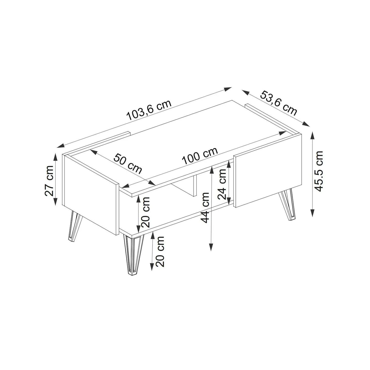 Ürün Ölçüleri: 103.6 x 53.6 x 45.5 (Genişlik x Derinlik x Yükseklik )